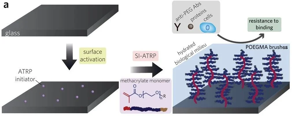 Nonfouling Polymer Brushes Synthetic biomolecular condensates enhance translation from a target mRNA in living cells Brachytherapy via a depot of biopolymer-bound 131-I synergizes with nanoparticle paclitaxel in therapy-resistant pancreatic tumors bla bla POEGMA single sentence bla bla POEGMA blurb Recent Publications